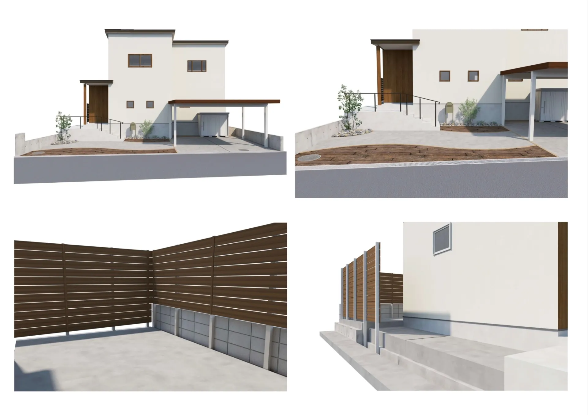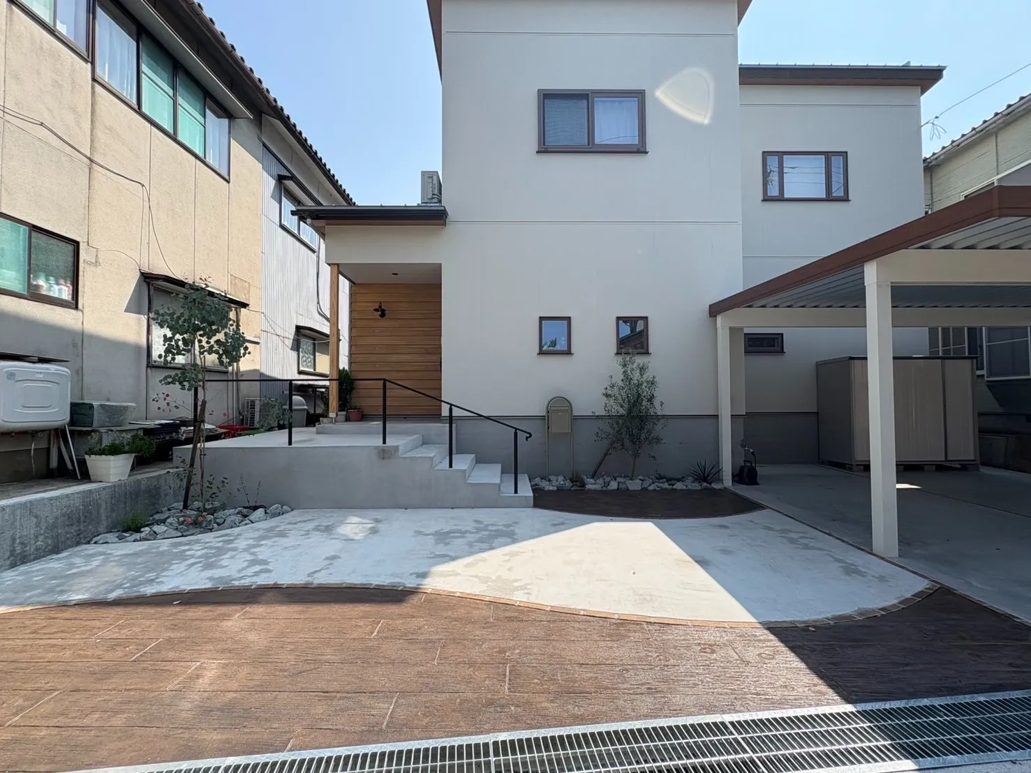 ブラウンとホワイトを基調とした、とってもカワイイ外構になりました‼︎🤍🤎なんと言っても、スタンプコンクリートが可愛い🤎